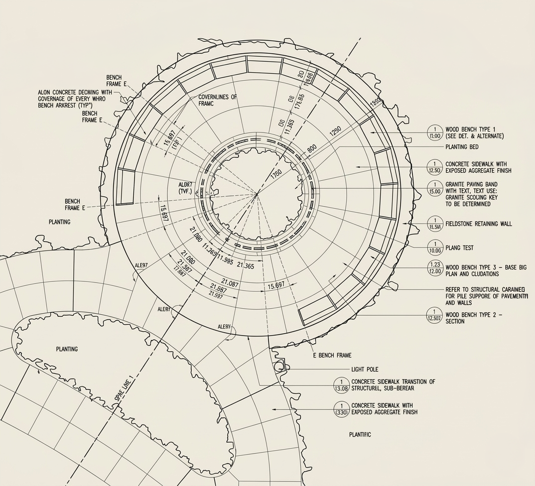 This circular bench was designed and crafted as a serene place of rest, offering a quiet moment of pause within the landscape.