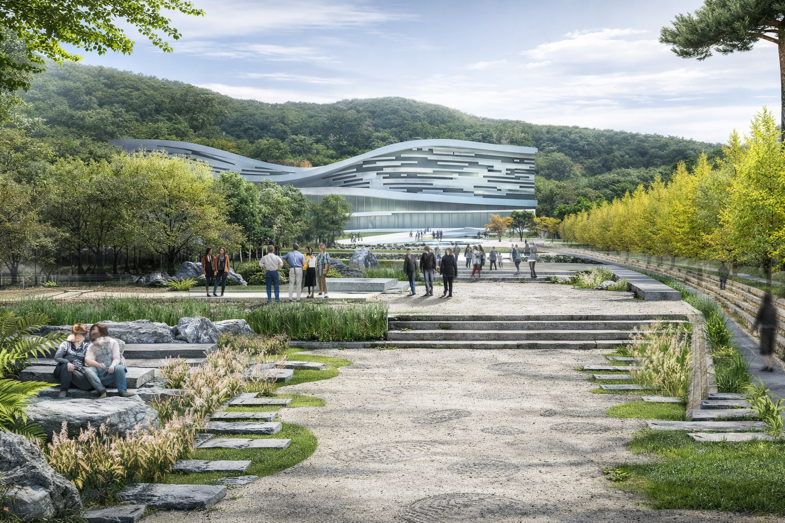 The completed landscape reflects a balance between cultural inspiration and modern landscape architecture.