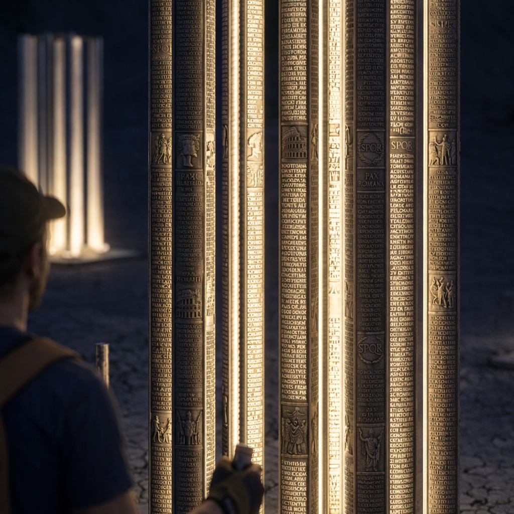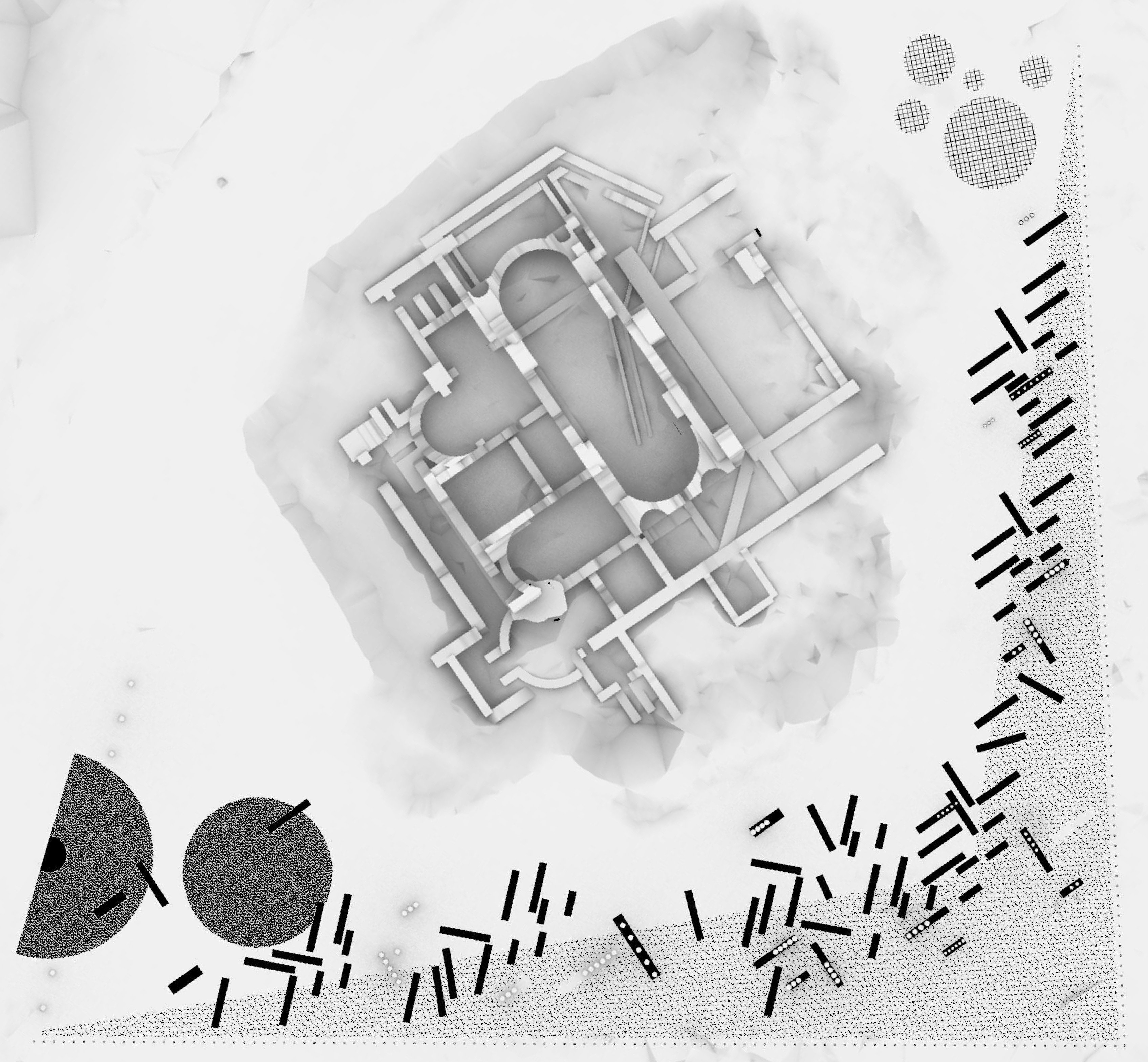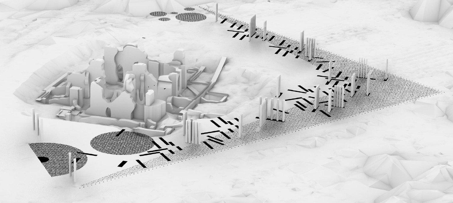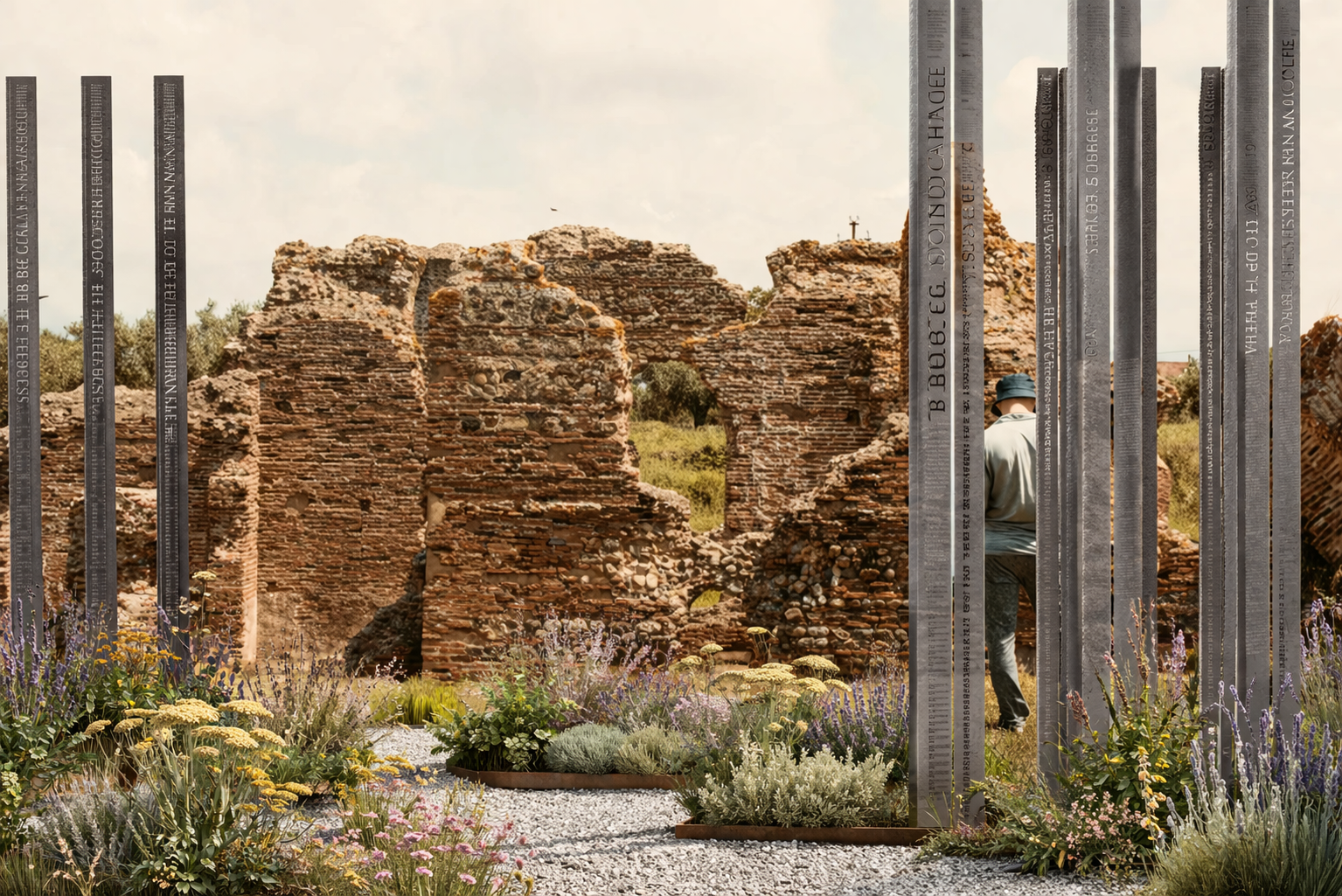 Landscape signature elements design inspired by the existing Roman relic and nature at the site.