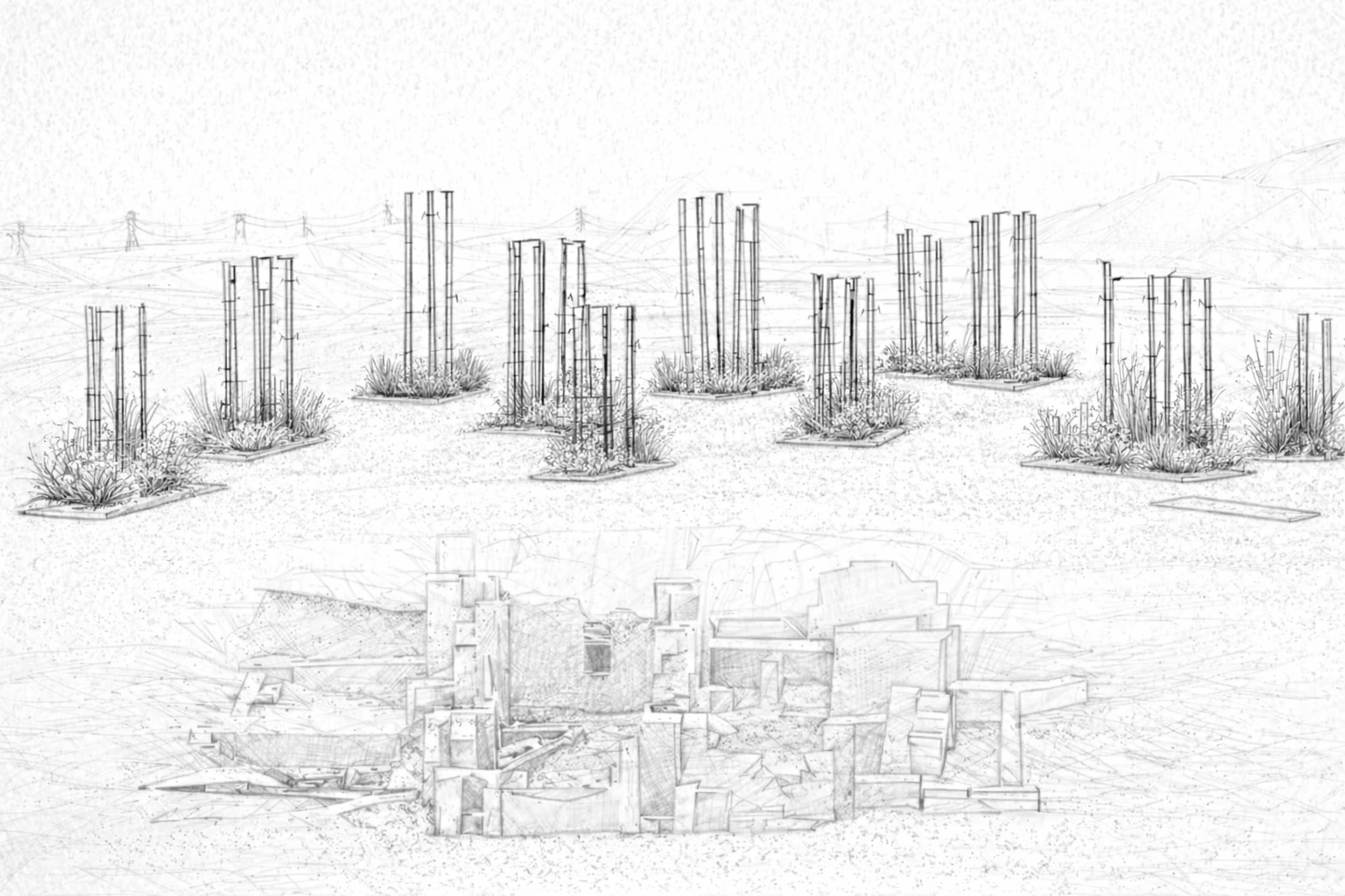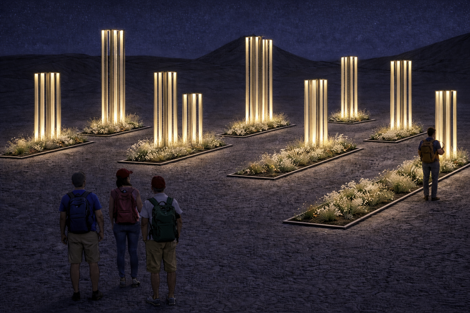 Inspired by relic columns, these movable bars emerge as a low-impact garden feature, adaptable for outdoor exhibitions and community events.