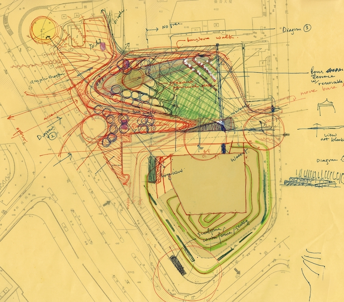 Part of a highly successful collaboration with Hassell, the design draws inspiration from the form of a traditional Chinese fan—unfolding into a series of elegant, radiating terraces. At its heart, the sculpted lawn creates a calming, healing landscape and serves as a flexible, multi-purpose space for gatherings, events, and everyday use within the office environment.