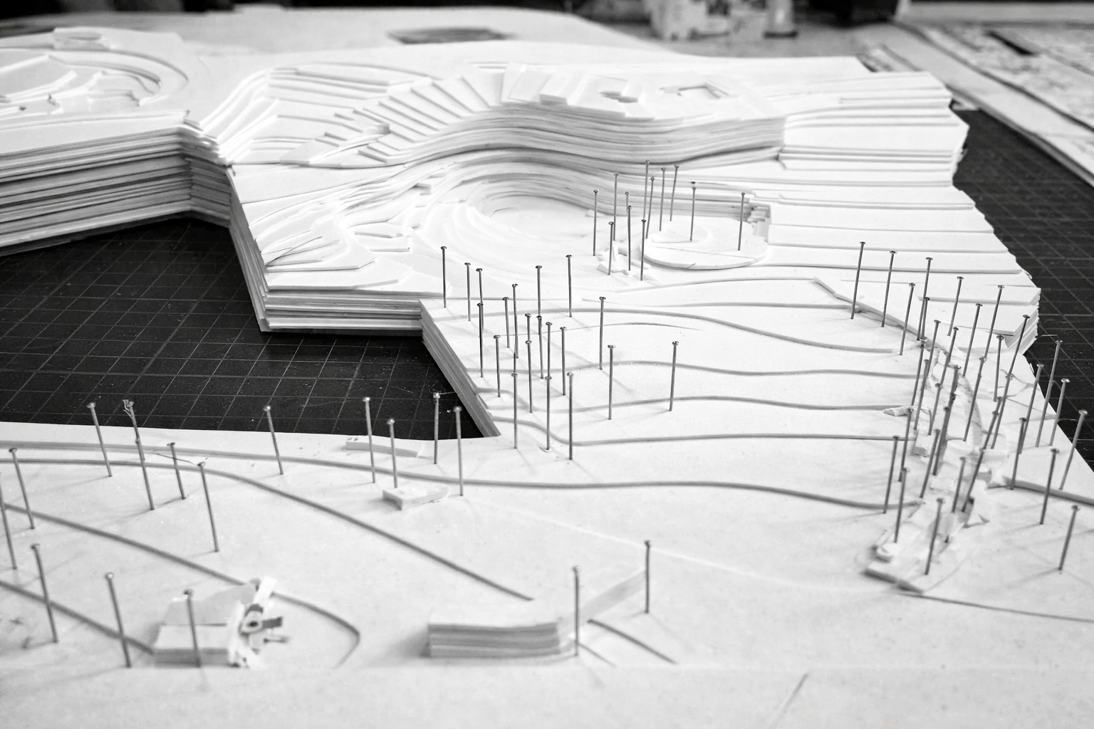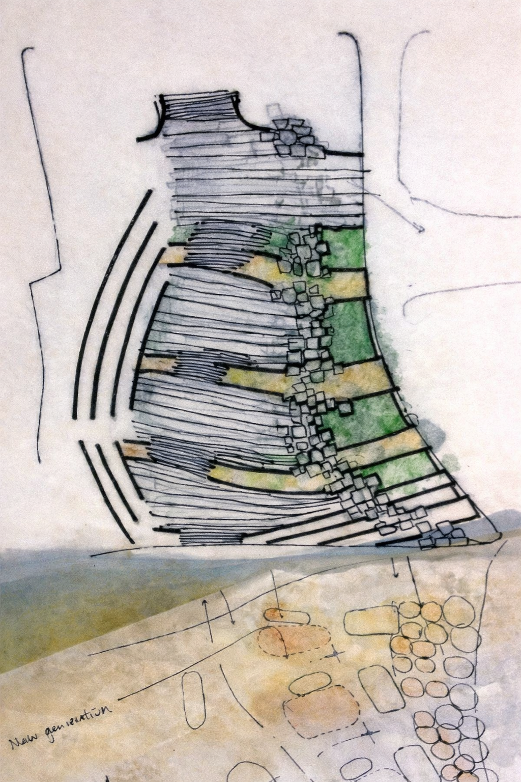 Site visits were crucial to understanding the scale of the landscape and its relationship to the museum architecture. Hand-drawn design sketches helped refine key ideas during the design process.